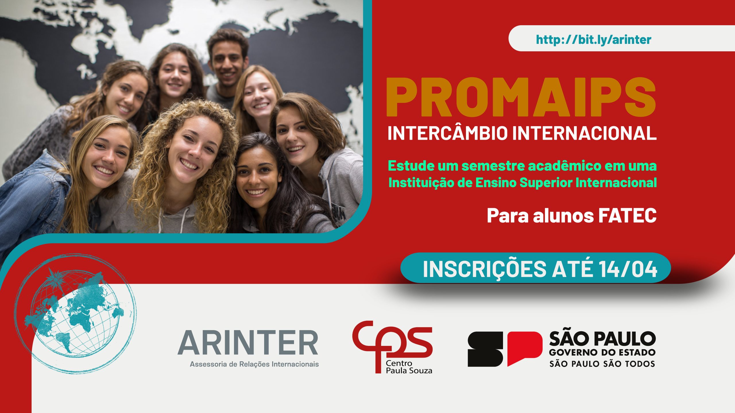 O Centro Paula Souza, por meio da Assessoria de Relações Internacionais (ARInter), torna pública a abertura do processo seletivo para o Programa de Mobilidade Acadêmica Internacional Paula Souza (PROMAIPS), destinado a estudantes regularmente matriculados nas Fatecs.