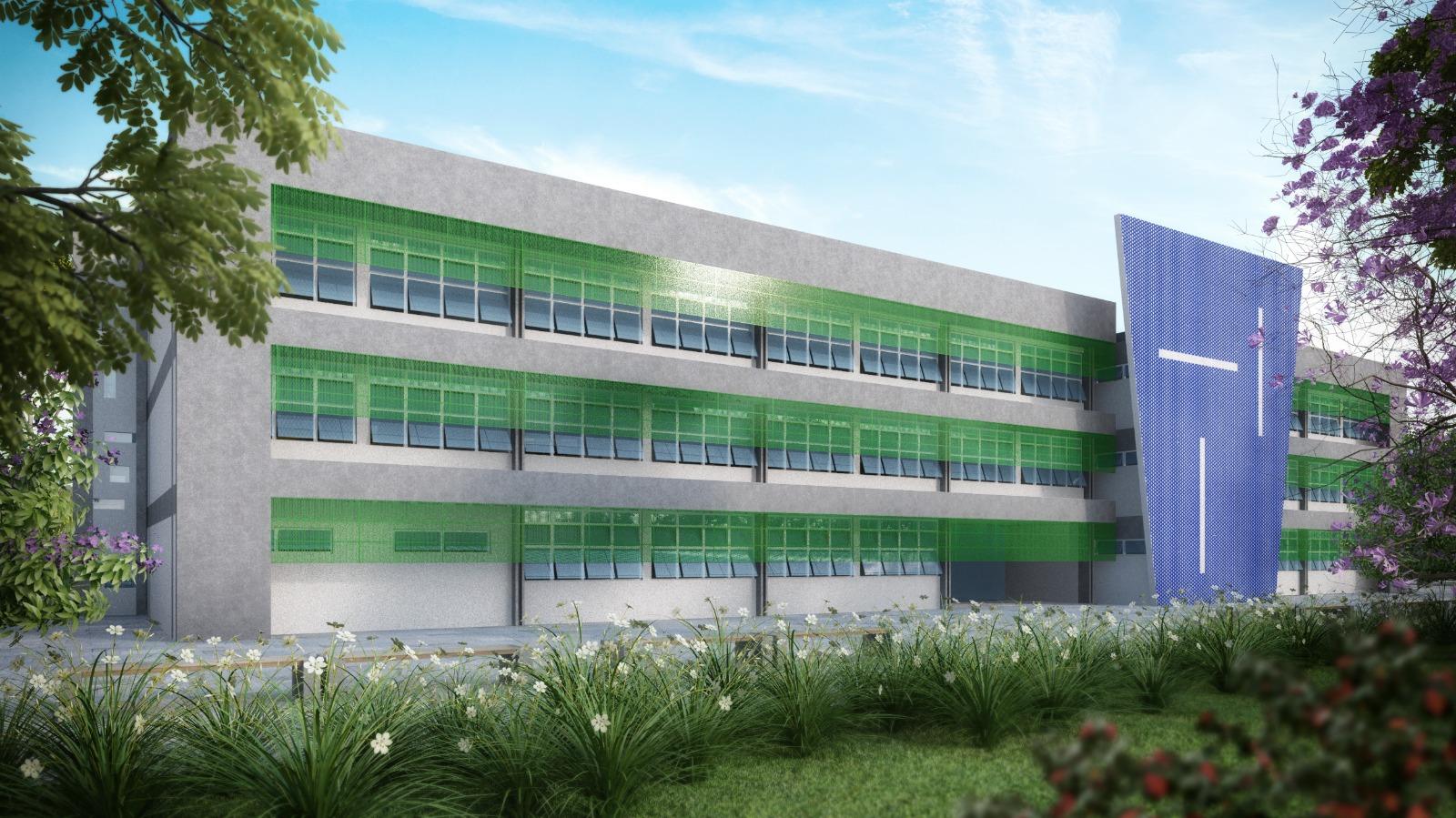 📚 Serão três andares com 12 salas de aula, seis laboratórios, biblioteca e uma sala maker, garantindo infraestrutura moderna e de excelência para mais de 400 estudantes.